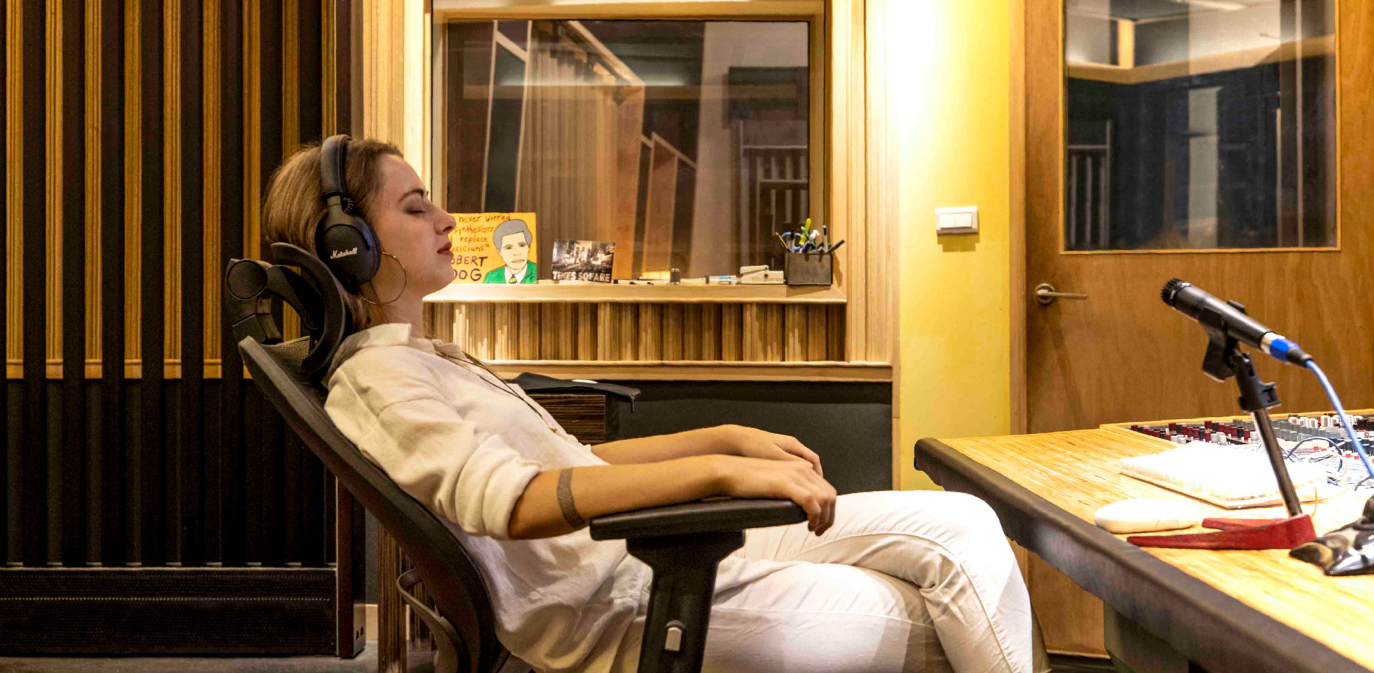 Thoughtful storage space is designed behind Voyager II ™ for musicians to store everything they need during the creation, such as music sheets, capos, or cables. The 3D rotatable armrest can be supportive during the recording engineer and spin backward to create a large space to perform.